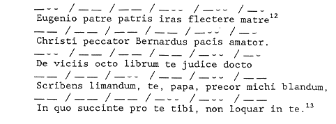hexameters rhymed in couplets with double internal rhymes, as in Bernard of